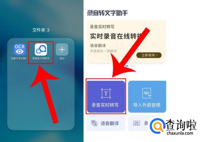 首先在另一台手机中的应用市场找到录音转文字助手,并装好在桌面上,然后打开工具,点击录音实时转写功能。