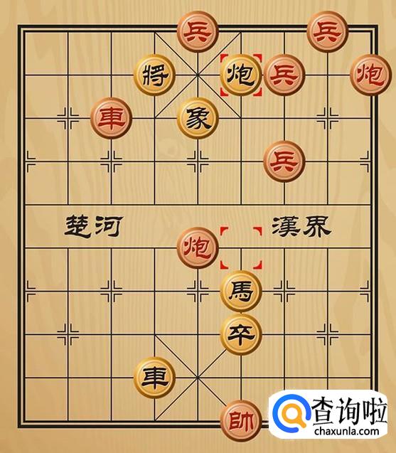 红方兵三进一将军,黑方只能炮6退4阻挡。
