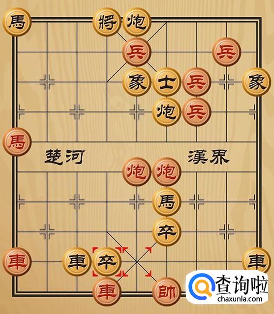 红方兵五进一吃掉黑方的炮将军,黑方只能将4进1躲避。