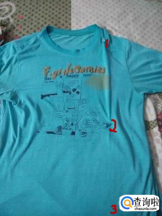先把衣服平铺在床上,为了讲清楚,在衣服上面标了1、2、3三个点。