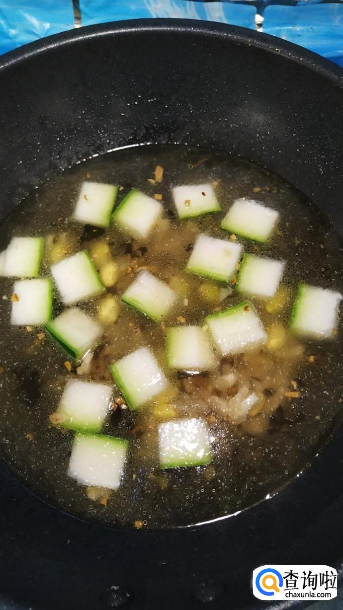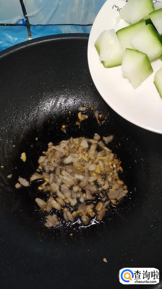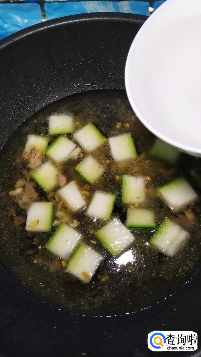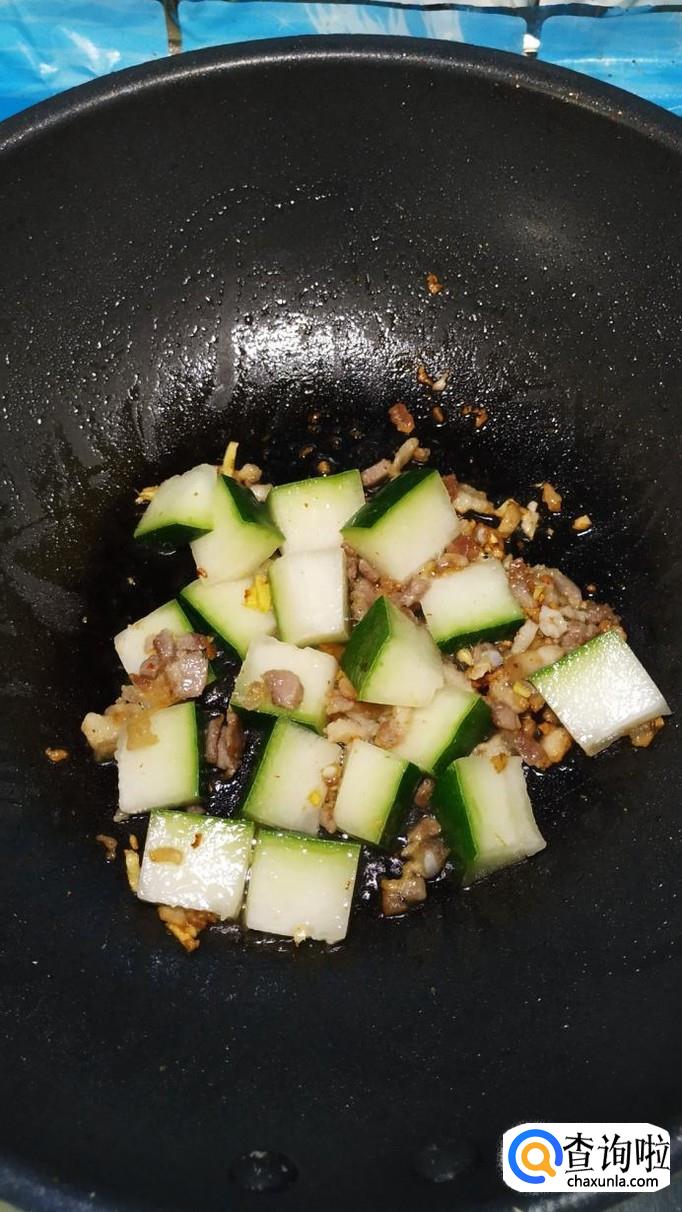 将切好的冬瓜块,放入锅中翻炒均匀。