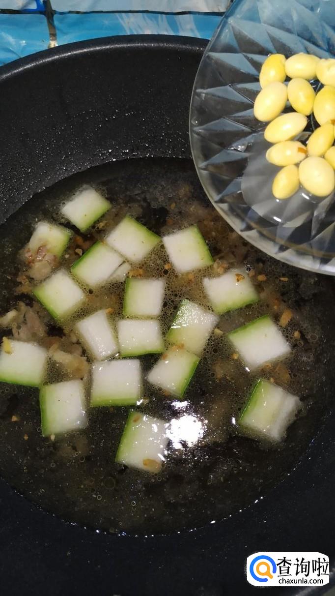 加入一大碗清水,然后将白果倒入锅中,大火将水烧开。