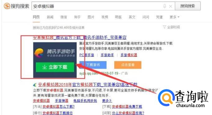 打开搜狗搜索,搜索“腾讯手游助手”,将其安装到电脑上面,如图所示。