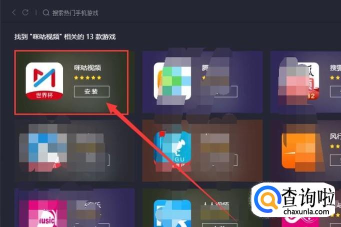 在搜索栏搜索“咪咕视频”,然后在搜索结果中点击“安装”即可。