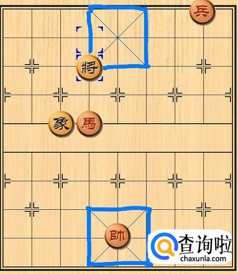 首先,将帅每次只能走一步(一格),前进,后退或者横走都是可以的,但是不能离开图中蓝色所框的区域。