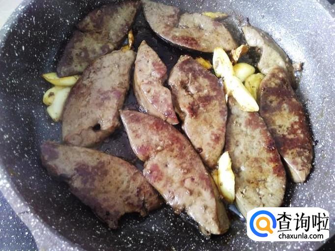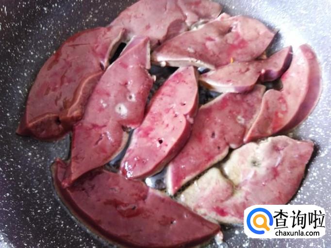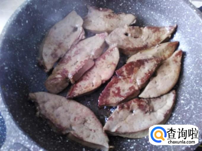 煎得2分钟左右,把羊肝翻转过来再煎。