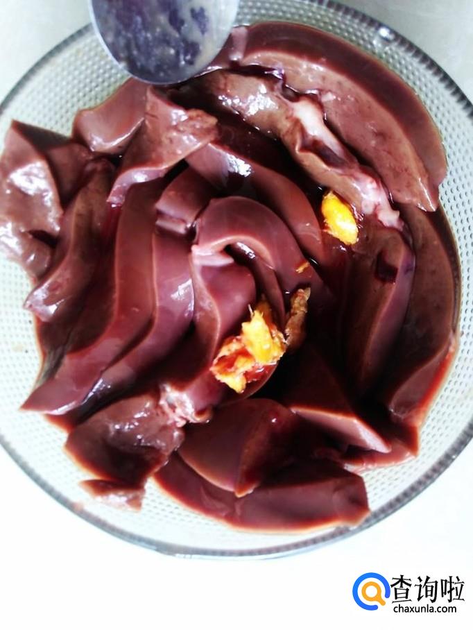 把羊肝切成厚片。【因为羊肝容易熟所以切片厚点】