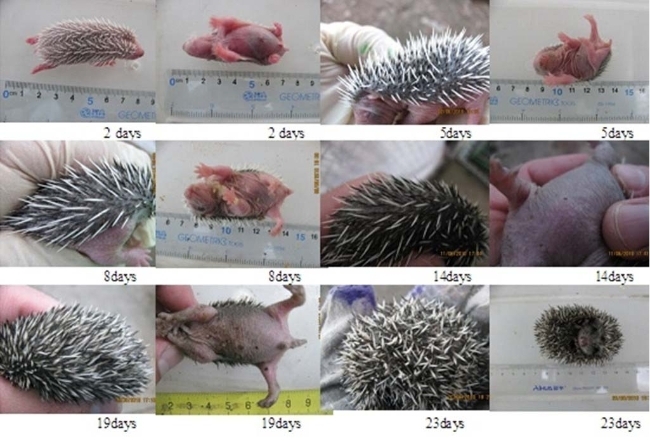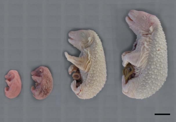 不同时期的刺猬胚胎(郭俊. 刺猬棘刺的形态结构及发育[D]. 内蒙古农业大学, 2013.)
