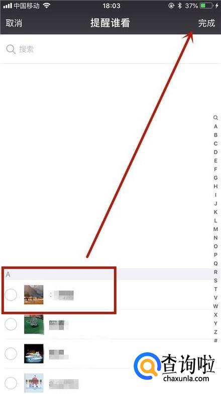 接着选择你要提醒的好友并点击完成,如下图所示。