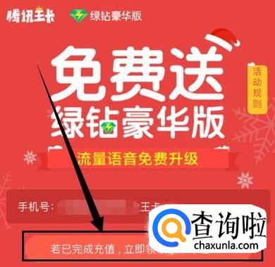 充值成功之后,点击“立即领取豪华绿钻”,进入下一界面。