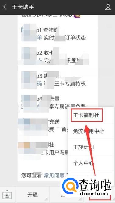 打开手机,进入微信,在添加公众号的地方搜索“王卡助手”,将其添加到公众号里面。