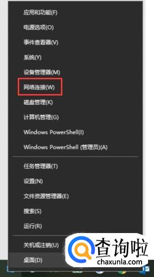 以win10为例,右键点击左下角,选择网络连接。(win7左键点击)