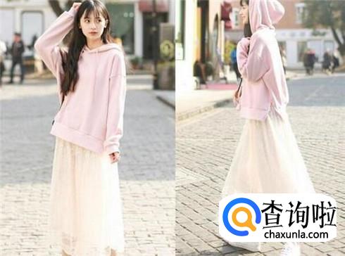 搭配短裙。白色卫衣,搭配折叠短裙,小女生特别喜欢的穿法,如果天气太冷,就穿一个打底裤,会显得人年轻,可爱。
