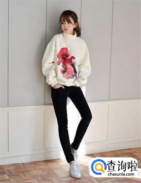 搭配黑色的紧身裤。白色的卫衣,本身是比较宽松的,如果裤子再穿的宽松的话,就显得不好看了。所以,一定要穿紧身裤,另外,黑白配是永远都不会过时的搭配。