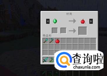 与村民进行交易,村民给你苹果。具体方法是点击村民,再点击交易,可以看到村民要交易的东西,有苹果可以交易。