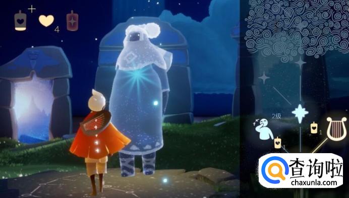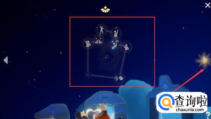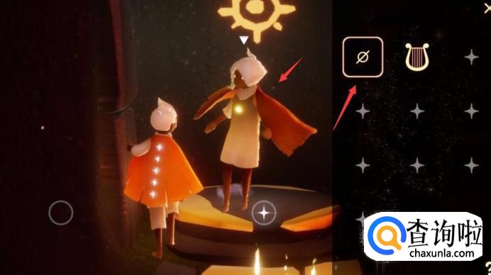 然后站在类似圣坛的地方,点击旁边的小图标。点击之后没,可以看到解锁出来的小动作,排成星系。