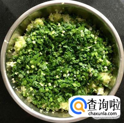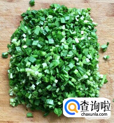 韭菜择去老叶子反复冲洗干净泥沙控干水分后切成韭菜末备用