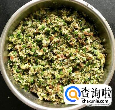 把海麻线、猪肉丁、海米放入一个容器中加入适量的花生油、盐、料酒、蚝油、香油搅拌均匀腌制入味儿,然后把白菜碎挤干水分、韭菜末放入容器中搅拌均匀即可