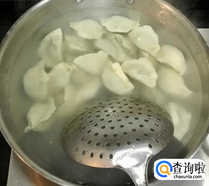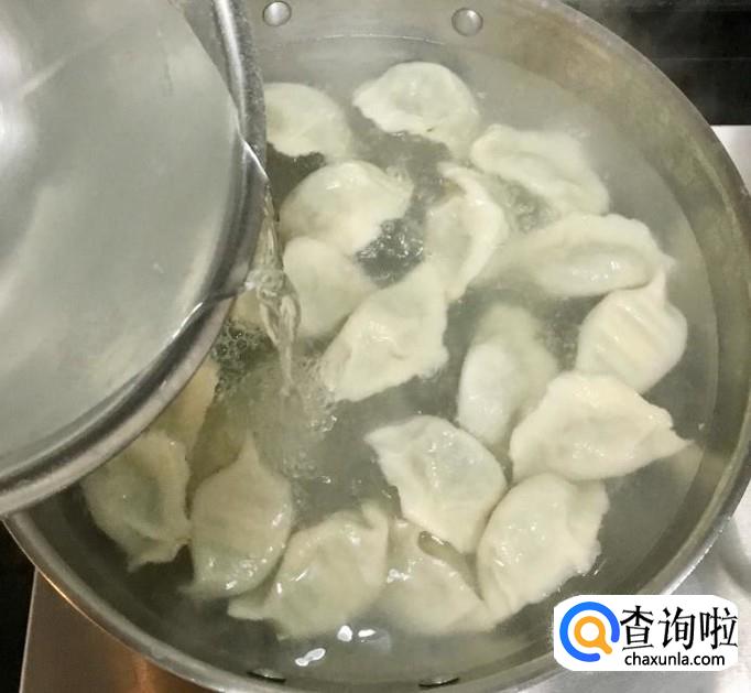 锅中加水煮沸下入饺子轻轻推散防止粘连,煮沸后点凉水盖上锅盖再次煮沸(重复一次此步骤)煮至饺子肚向上并鼓起即可关火