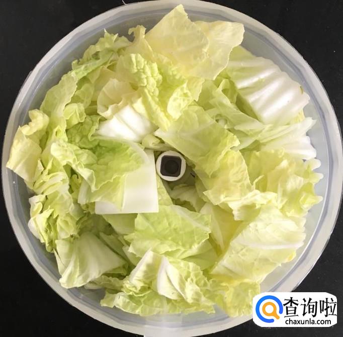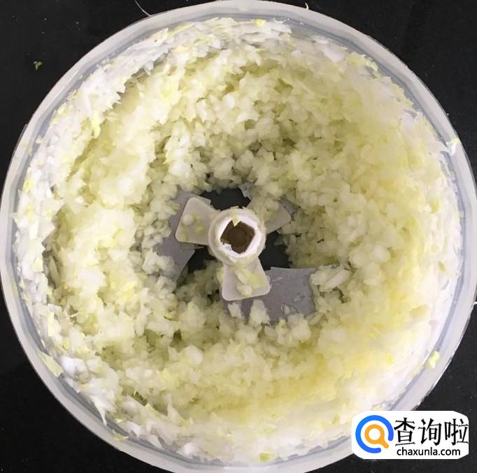 大白菜取叶子清洗干净沥干水分后切成大块,放入料理机中加入一点点盐绞成白菜碎
