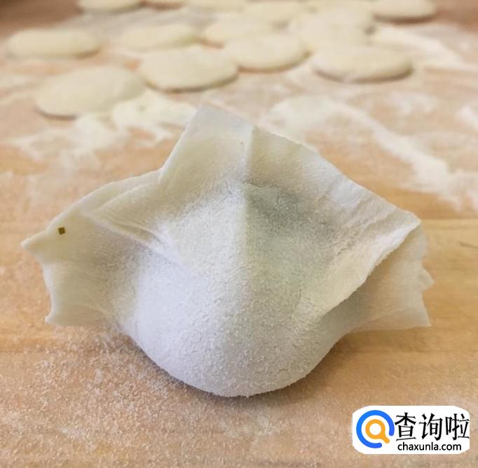 饺子皮中间放入足量的馅料对折后捏紧包成饺子即可