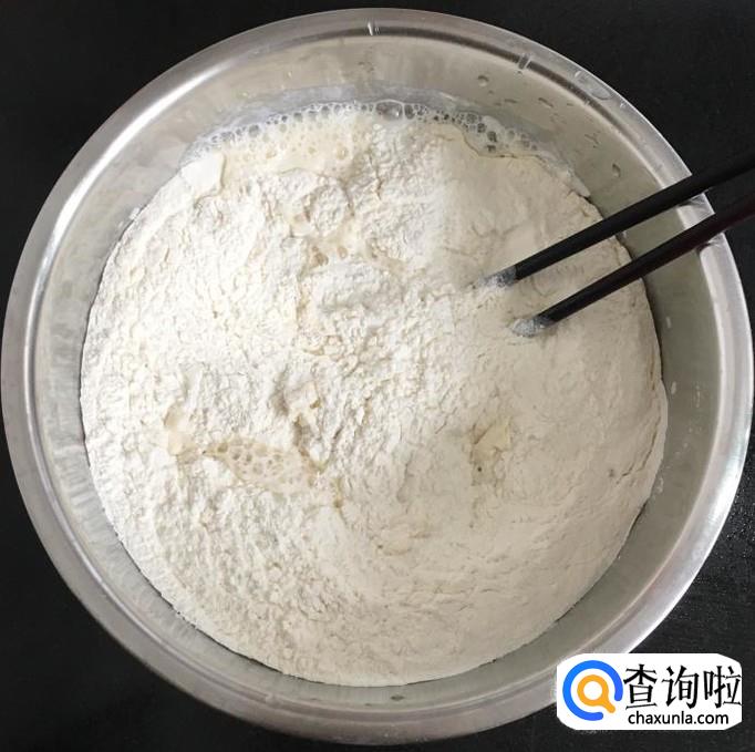 取适量的面粉放入容器中一边加水一边搅拌至没有干面粉,然后和成表面粗糙的面团醒20分钟后再揉一次使面团表面光滑继续醒20分钟。