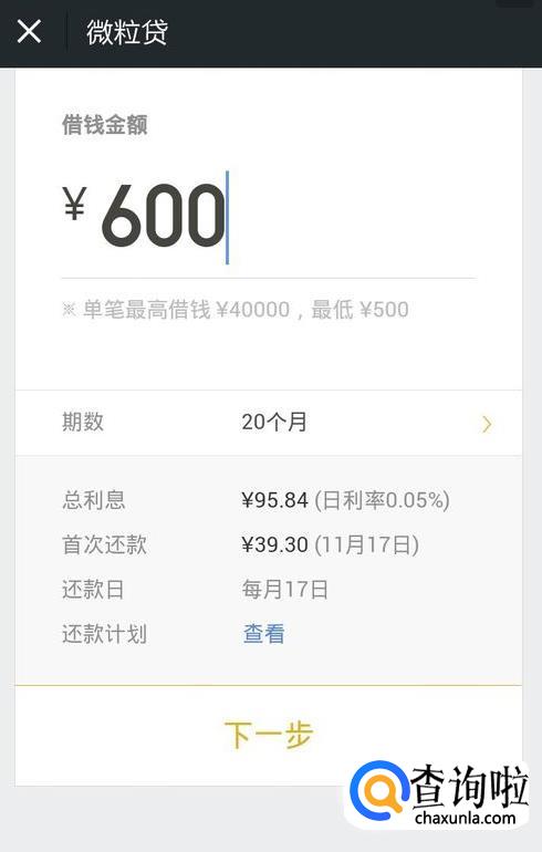 调整好之后点击下一步,然后选择一张收款卡,也就是银行卡,也就是你借的这笔钱要到账至哪一张银行卡里。