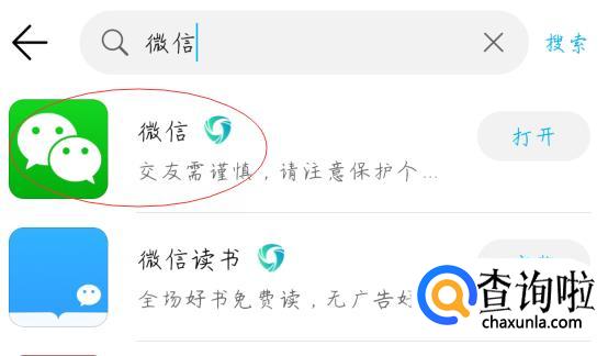 首先在手机应用市场里面,搜索【微信】并点击下载。