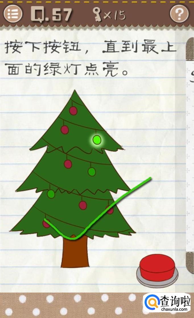 第57关:要求是按下按钮,直到最上面的绿灯点亮。这一关就一直按着红色按钮,直到最顶层绿灯亮时,就松开手指