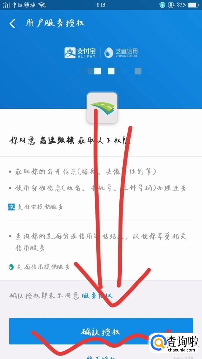 点击最下方“立即开通”,同意高速纵横获取权限,点击“确认授权”。