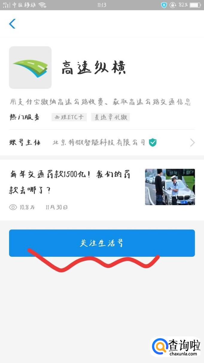 点击“生活号”,搜索“高速纵横”生活号并关注。
