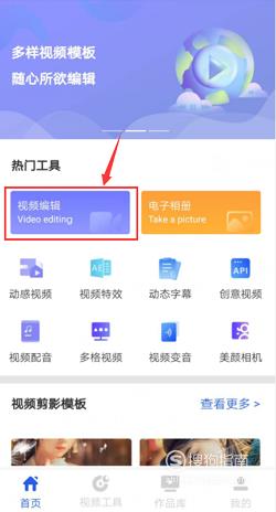 1、首先需要打开视频编辑软件,在首页中找到并点击“视频编辑”功能。