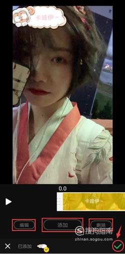 6、点击“编辑”可以对之前的设置进行更改,点击“添加”可继续添加字幕,“删除”可以删除之前所有操作。如果不需要进行编辑、添加或删除,点击右下角的“√”。