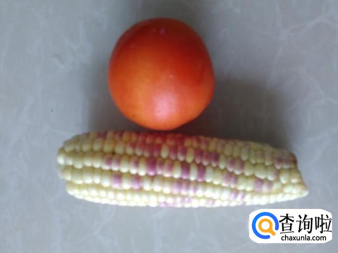 糯米150克,嫩甜玉米1棒,番茄1个,白糖适量。