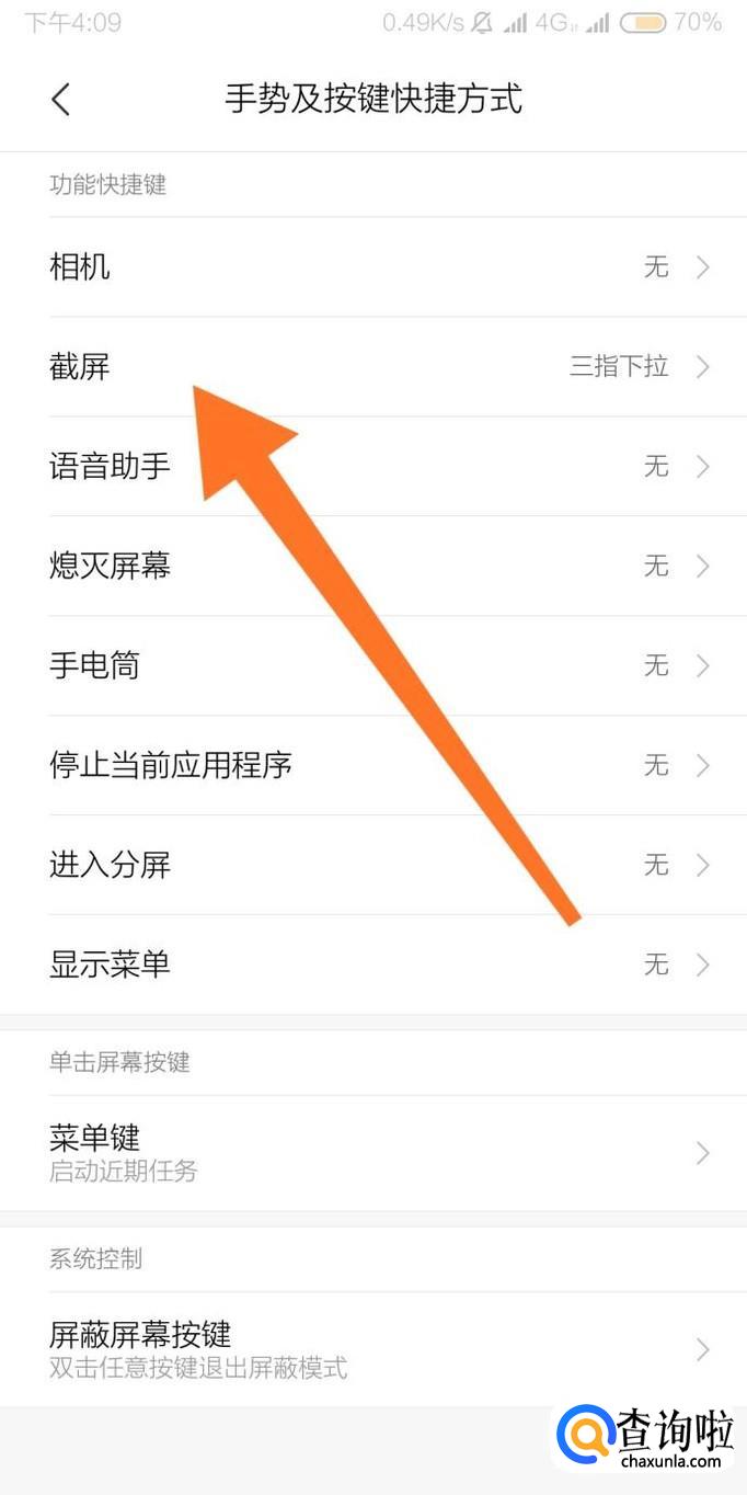 接着点击进入“截屏”功能快捷键设置选项。