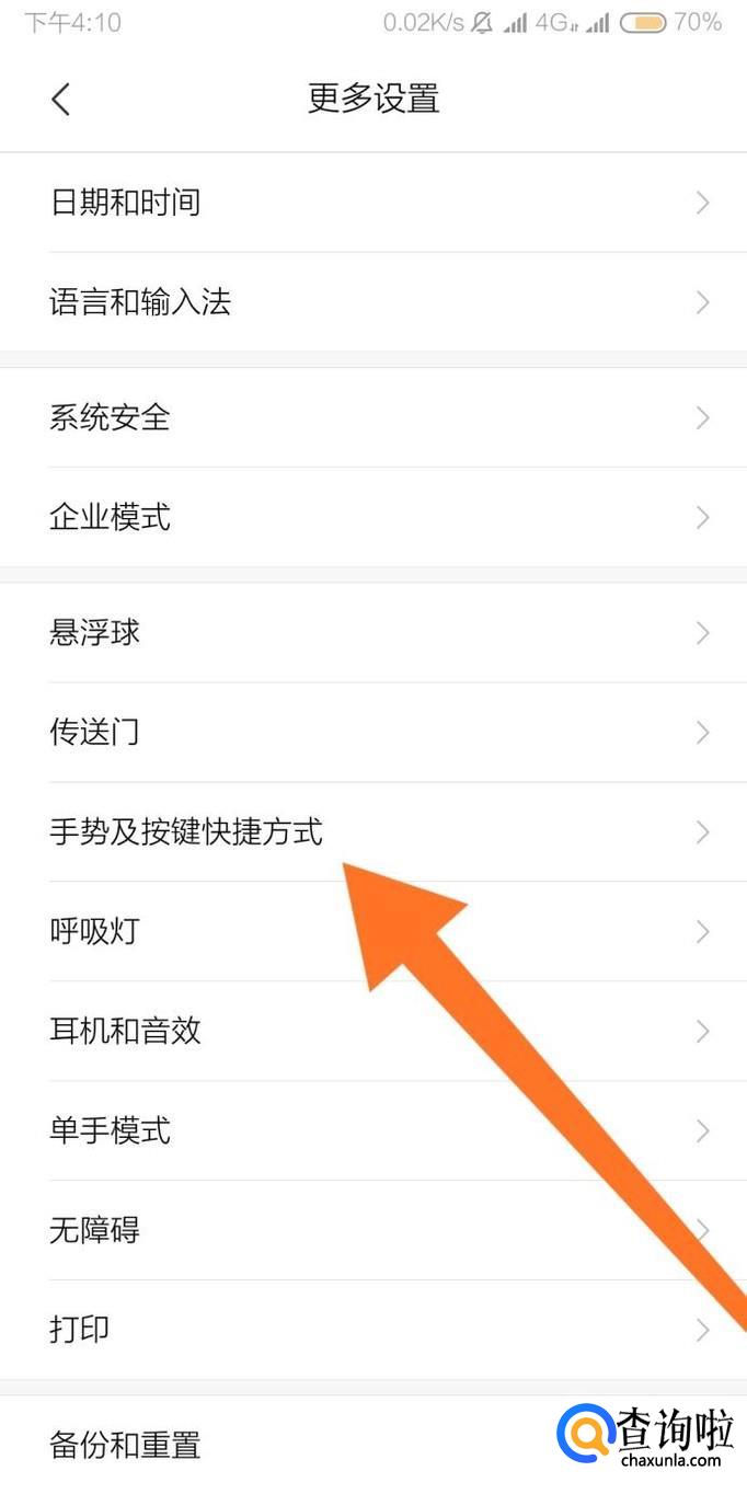 再点击进入“手势及按键快捷方式”设置选项。
