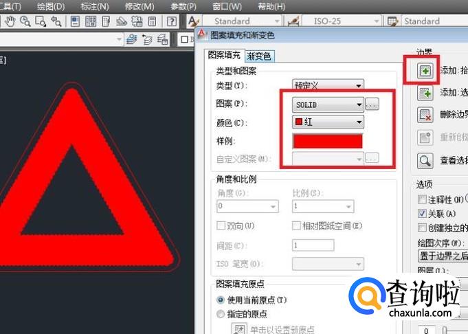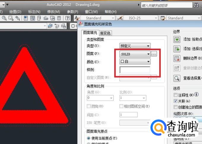 3、将图案一栏设置为“SOLID”,