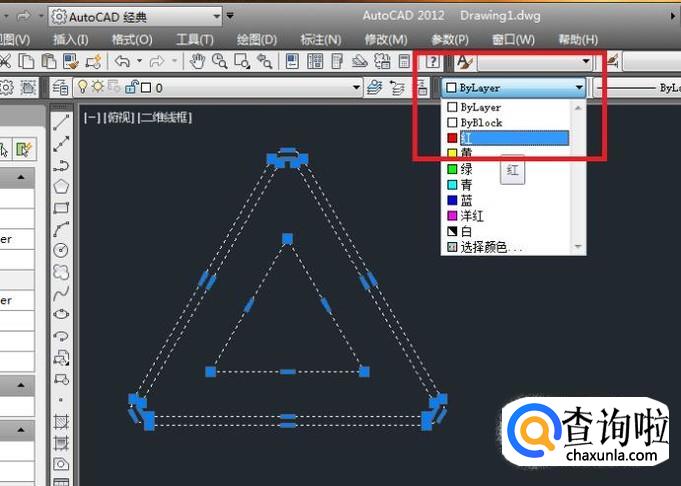 如下图所示,将所有三角形线段变成红色。
