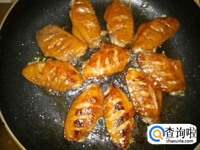在锅里放上少量的菜籽油或花生油都ok,把鸡翅倒入,小火煎至两面金黄,然后放入生姜,大葱,八角,香叶翻炒一下。