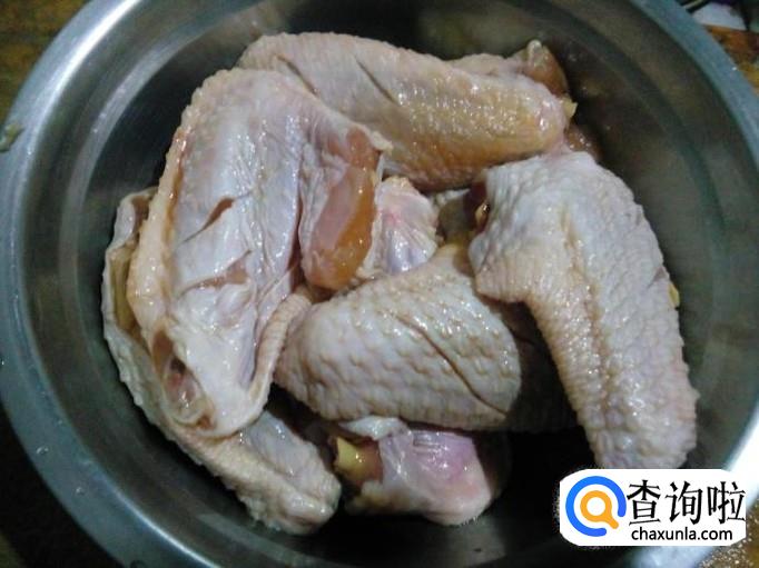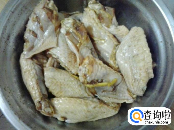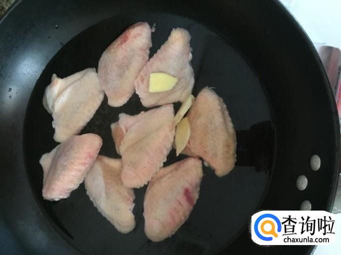把鸡翅放进装有冷水的锅里焯一下,可以去掉血水和腥味,要加一些姜片和料酒,大约煮个七八分钟就可以捞起,用冷水冲去鸡翅上的浮沫,沥干水分。