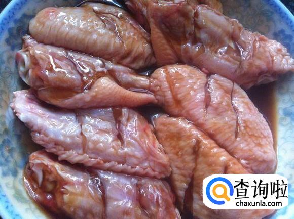 将买来的鸡翅解冻,洗净,在鸡翅的两面均用刀划两下,可以划得深一些,方便鸡翅里的血水流出。