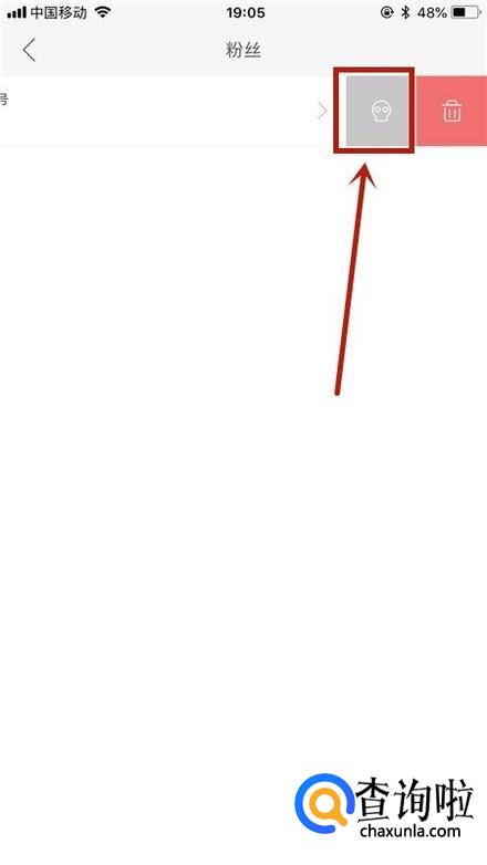 接着选择一个粉丝屏幕往左滑动,如下图所示。