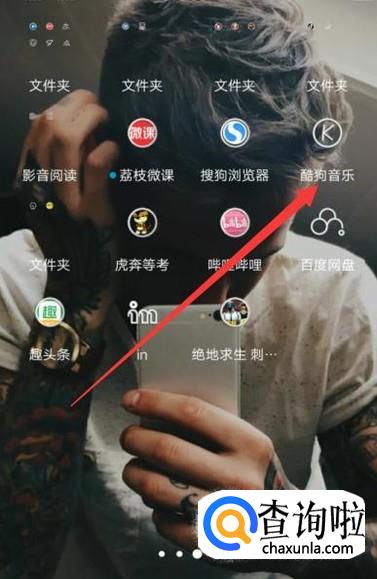 打开手机,找到酷狗音乐,点击并进入,如图所示。