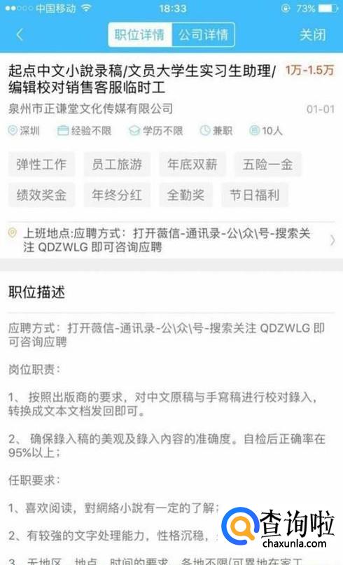 当然只看兼职信息有时候并不能判断一个兼职信息的真实性,我们可以通过和联系人的沟通进一步来辨别。
