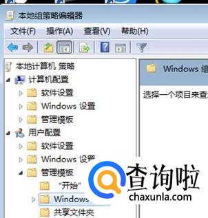 在组策略编辑器左边依次点击“用户配置”—“管理模板”—“Windows组件”。