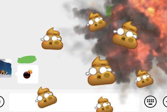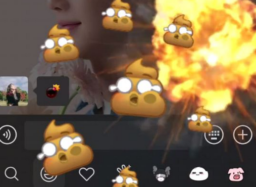 想要触发这个炸屎的动画效果,首先要一方发送“屎”的表情,而后另一方跟着发送出“炸弹”的表情,要快一点,因为是动态表情;当炸弹和屎的表情同时出现在屏幕上时,就可以触发微信炸屎特效,看到炸弹向对面飞去,引发爆炸效果。