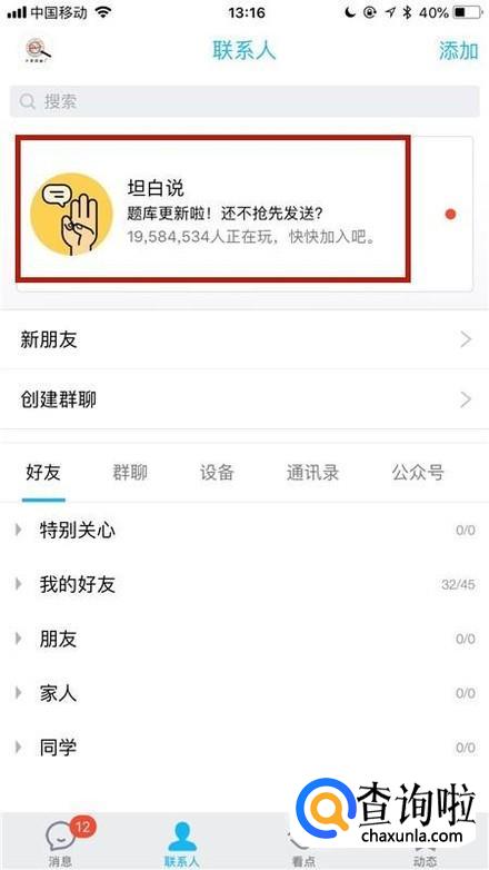 点击我收到的可以查看好友对自己的坦白说。