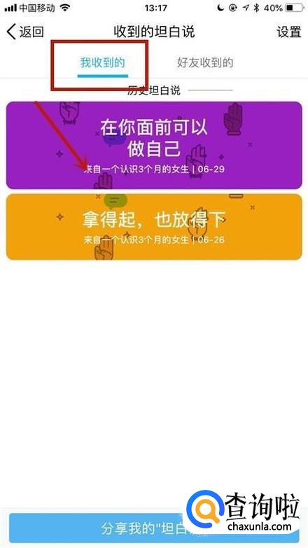点击好好友收到的,可以查询我们对好友的坦白说。你学会了吗?赶快动手试一试吧。