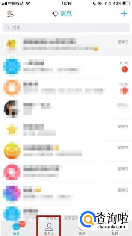 然后点击屏幕下方的联系人,如下图所示。