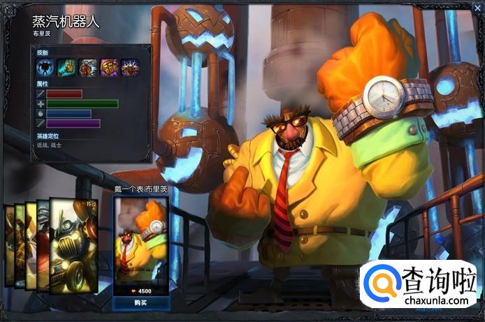 蒸汽机器人,又名布里茨,作为竞技游戏《英雄联盟》中的一名强势的辅助英雄,一直受到玩家们的喜爱。那么,lol蒸汽机器人布里茨的皮肤有哪些呢?下面由小编来进行简要的介绍。